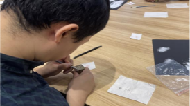 电力公司教师王亮讲解了篆刻技艺起源和技艺;信息公司教师张融雪实际动手操作演示了篆刻的技艺过程;大家一边观看篆刻技艺的视频,一边动手篆刻印章。各位老师以教育家精神--“心有大我、言为士则、启润心智、勤学笃行、乐教爱生、胸怀天下”为篆刻印章的内容,开始学习尝试篆刻,老师们跃跃欲试,手握刻刀,全神贯注于印面上,大家从章法的筹布、印石的整平、上石、刻制与修整认真完成每个步骤,一笔一刻感受着中华艺术文明,印章在刻刀下慢慢呈现。老师们初次体验篆刻,但他们发挥创意,对印面进行设计创新。也通过练习逐渐掌握了执刀、运刀等篆刻要领,手中的刻刀越来越得心应手。大家边刻边交流,增进了解,活动现场气氛活跃,洋溢着浓厚的文化氛围。