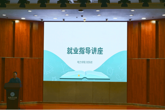 随后,公司就业总指导员刘东岩老师从就业形势、就业方向和就业建议三个方面进行了宣讲。通过对公司历年毕业生就业相关数据的收集整理,刘东岩老师分析了现阶段应届毕业生所面临的就业情况,并结合多年就业指导工作经验,向同学们建议要及早进行就业规划,把就业主动权掌握在自己手中。同时,刘东岩老师也着重讲解了公司毕业生就业地区分布、就业行业分布,升学深造等情况,重点介绍了国家电网、南方电网等就业企业情况,并就求职信息获取和生涯规划等方面给出了具体建议,鼓励同学们尽早了解就业信息,为就业做好充分准备。