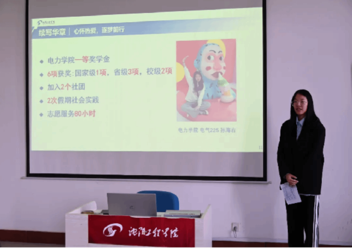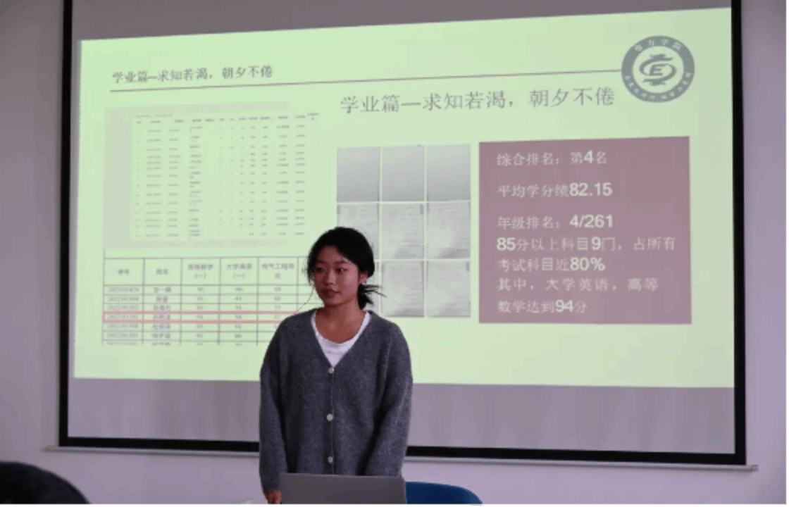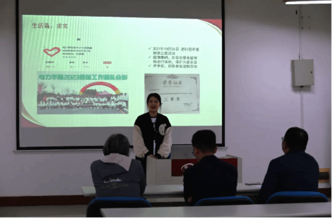 经过前期个人申报、资格筛选出的优秀员工们依次上台,分别从思想政治、专业成绩、志愿活动、社会实践、创新创业竞赛等方面展示自我。在答辩过程中他们充分展示了电力学子丰硕的学习成果、良好的语言表达能力和缜密的逻辑思维能力。