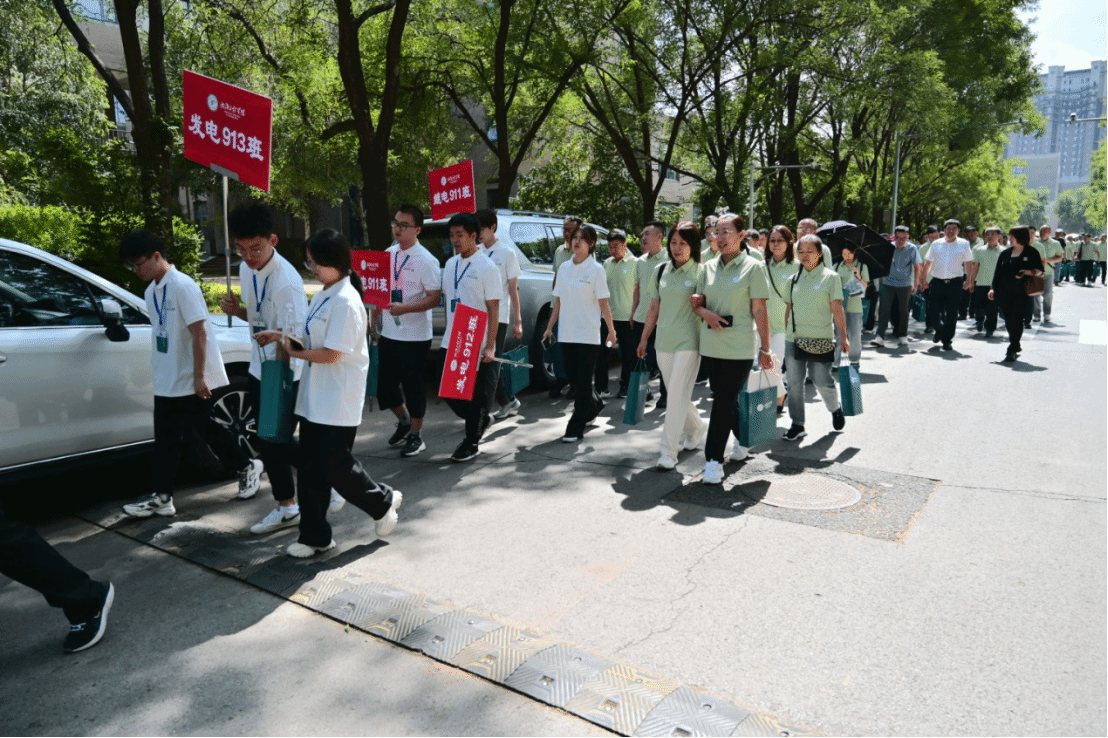 返校期间,员工们身着整齐的纪念衫来到曾经学习生活的地方,拍照留念,定格毕业三十年的美好瞬间。